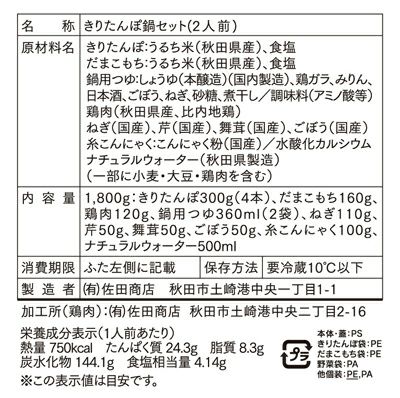 ご自宅用 鍋料理きりたんぽ〈2人-3人前〉(冷凍品)※野菜なし